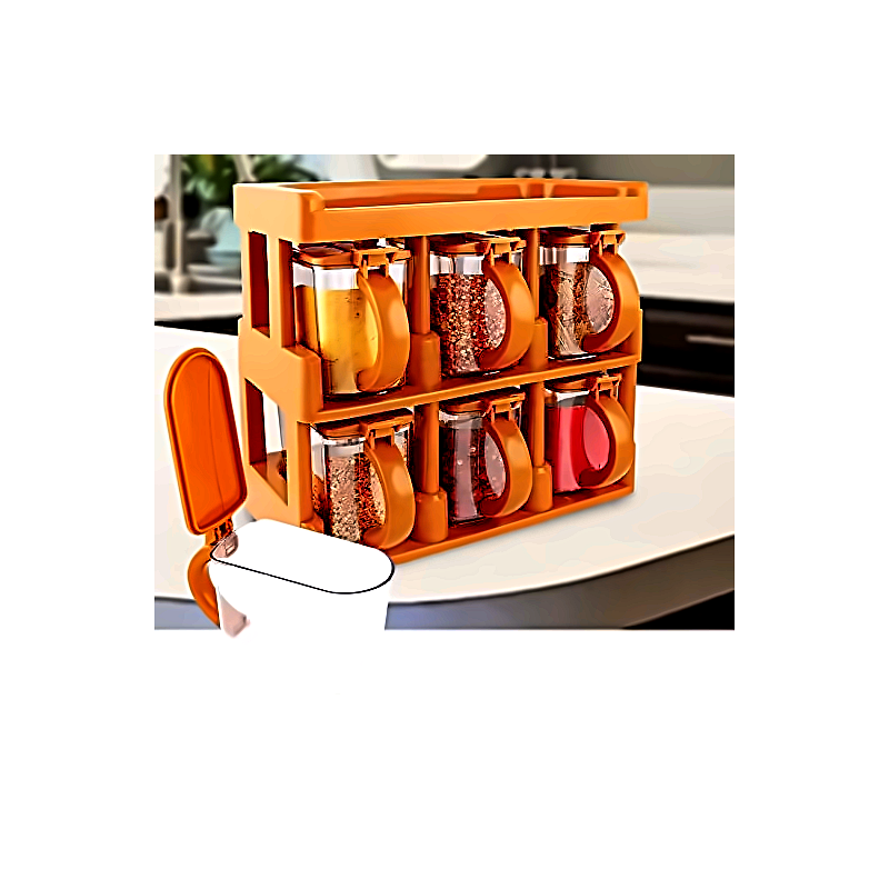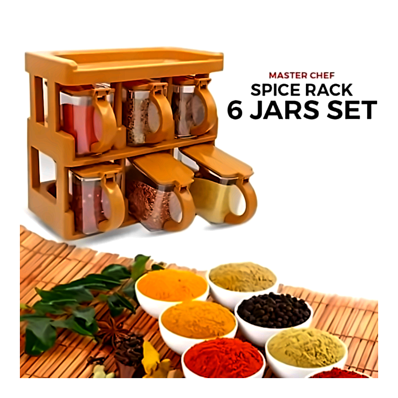 6 Jar Spice Rack Set – Kitchen Organizer with Airtight Spice Containers