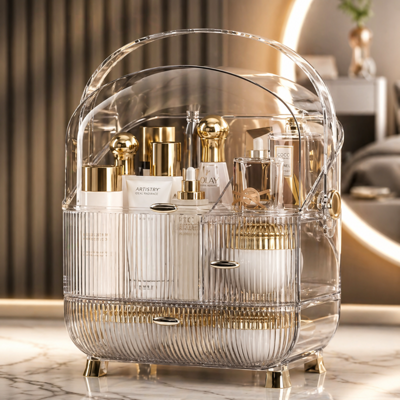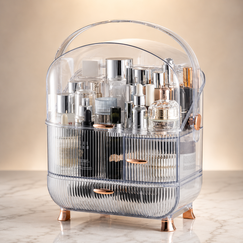 Luxury Makeup Organizer Box with Cover – Dustproof Cosmetic Storage with Drawers